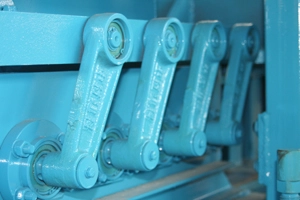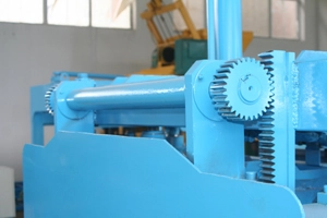 The Synchronous demoulding System which is driven by gears and chains makes the two demoulding cylinder work synchronously and makes the moulds moves